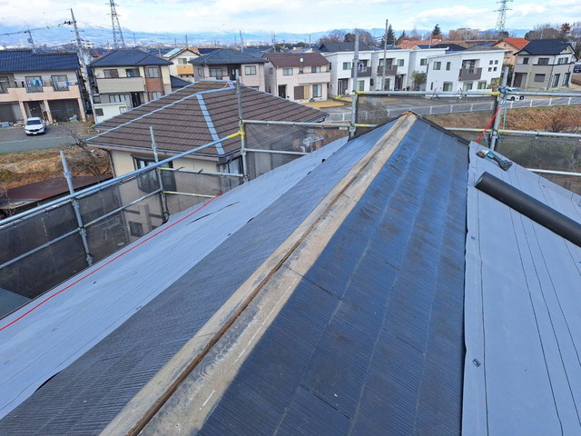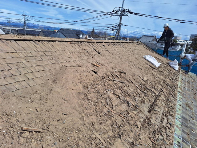 葺き替え工法の屋根工事の途中写真