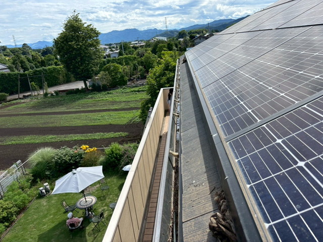 屋根と太陽光パネルの隙間にスズメが巣を作り困っていたところ、弊社の過去の施工例を見てホームページよりお問い合わせいただきました。