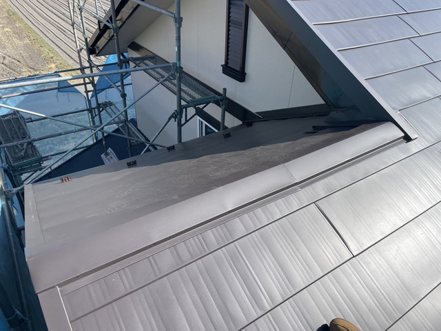 下屋根の仕上げ、棟下地から完成までの様子はこちら