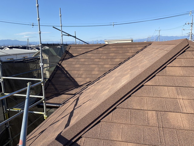 群馬県前橋市 O様邸 既存のスレート材はかなりひどい劣化状況でした ディプロマットスターへ葺き替えました 新築同様の屋根になりましたね 使用材料 ディプロマットスター 工事内容 屋根葺き替え(同質材仕上げ)工事 90.2㎡ 工事費用 ¥1228310円(撤去処分費込み) 工事日数 5日