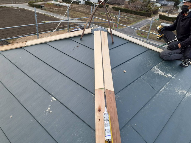 そこに棟包み板金を被せてしっかりと固定、シーリング処理で仕上げました。