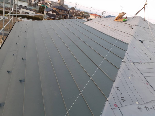 その後、横暖ルーフSを軒先から順に丁寧に本葺き。