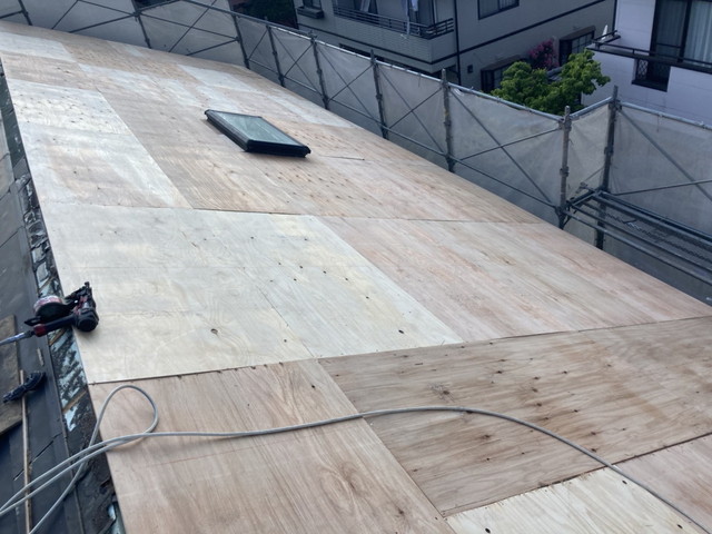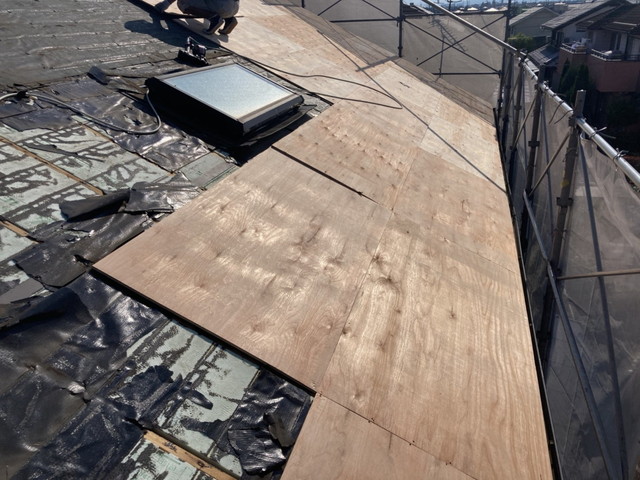 屋根リフォームをご依頼いただいたお住まいは、築年数が経過しており、このまま新しい屋根材を施工すると、耐久性に不安が残るため、上から構造用合板を増し張りし、下地を強化することとなりました。
