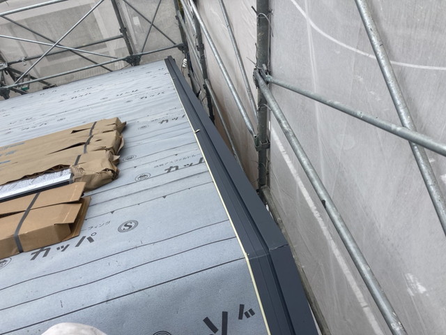今回は、屋根リフォーム工事に伴い、軒先唐草水切り板金およびケラバ水切り板金のといった役物板金の設置作業を行いました。