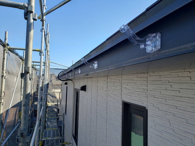 受け金具の設置が完了したため、次回は雨どい本体(軒どい)の取り付け作業を行う予定です。しっかりと固定し、雨水がスムーズに流れるよう調整を行っていきます。