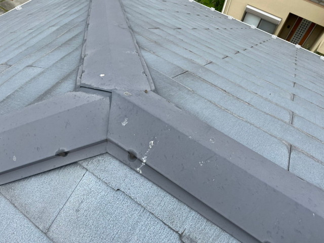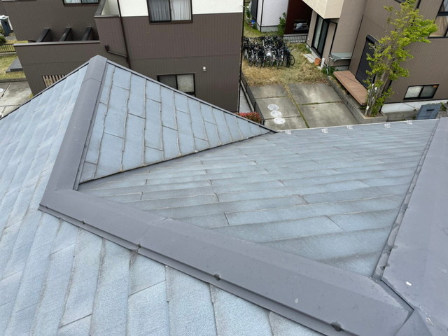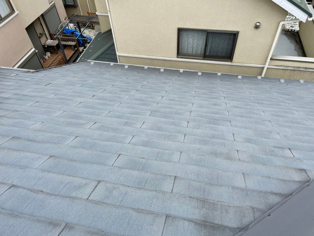 コロニアル(スレート)屋根は、軽量で施工性に優れた屋根材として広く使われており、築15〜30年ほどで劣化や色褪せひび割れなどの症状が見られることがあります。今回のお客様のご自宅も、築20年以上経過しており、風雨による経年劣化が進んでいる状況とのことでした。