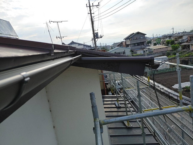 その後、パナソニック製半丸105を設置し、呼び樋・這い樋も適切に施工しました。