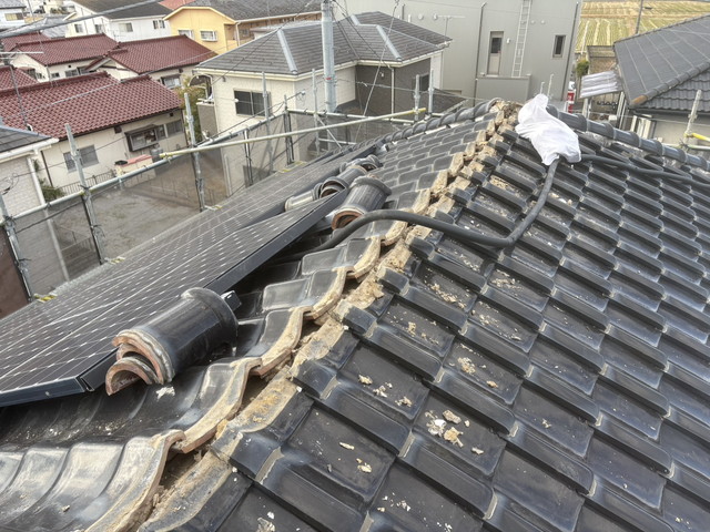 今回の現場では、まず既存棟瓦撤去からスタートしました。