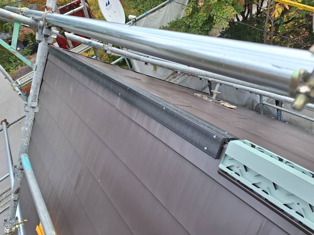 棟板金の仕上がりも非常にシャープで、見た目の美しさと耐久性を両立した施工が実現できました。