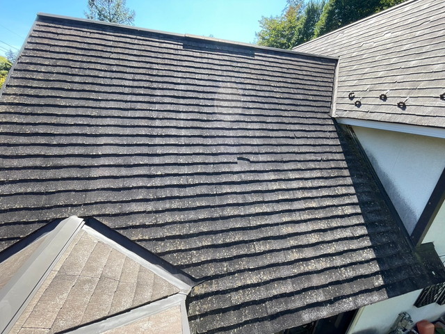 長野県軽井沢町 矩勾配スレート屋根色落ちが気になる 無料調査