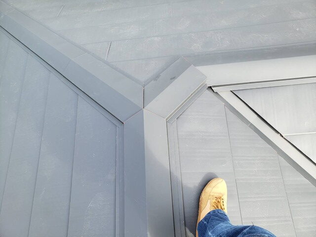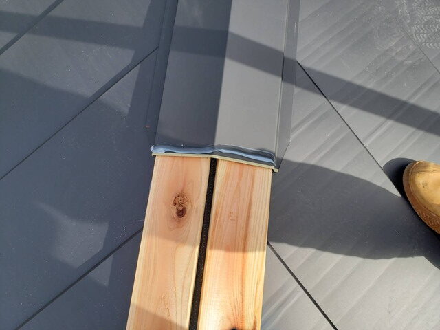 これは、屋根の棟部を金属板(板金)でカバーする工法です。見た目もスッキリし、雨水の浸入を防ぐ重要な役割があります。