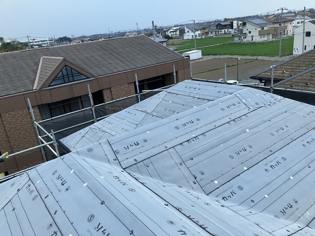 このまま放置すると雨が降った際に雨漏りしてしまうかもしれませんので、下葺きまでは最低限終わらせるようにしております。