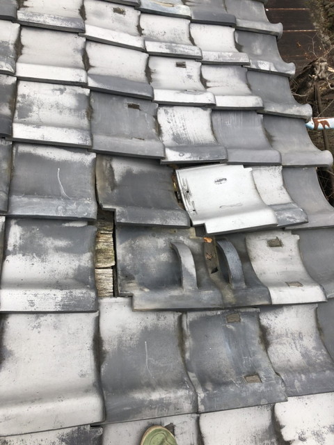 写真からも分かるように、瓦同士の隙間が生じ、下地が露出している箇所もあります。