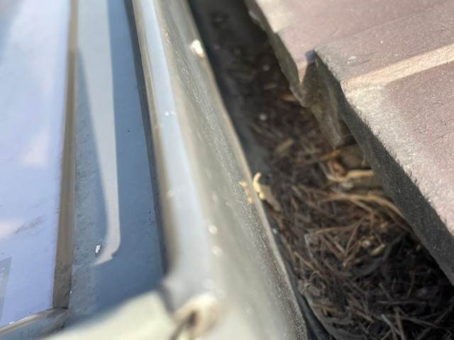 今回のH様邸でも、瓦とトップライト枠の取り合い部分に隙間が見られ、このまま放置すると雨水が侵入し、下地の腐食や室内への雨漏りにつながる可能性がありました。