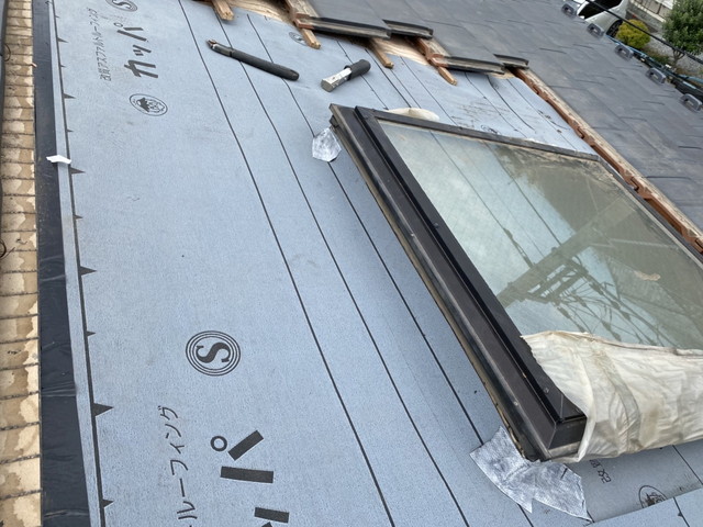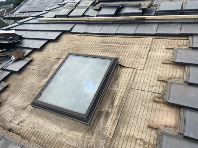 現地調査の結果、トップライトまわりの防水層と既存の瓦下地に劣化が見られたため、部分的な瓦の撤去と下葺き材の再施工を行うことになりました。