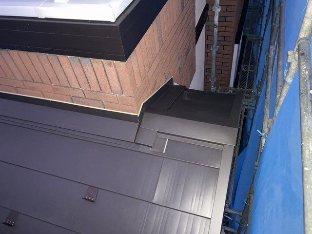 写真の通り、壁際まで美しく納まり、見た目だけでなく機能性も高めています。また、板金の固定位置やビスの間隔にも細心の注意を払い、長期間安心できる仕上がりとなりました。