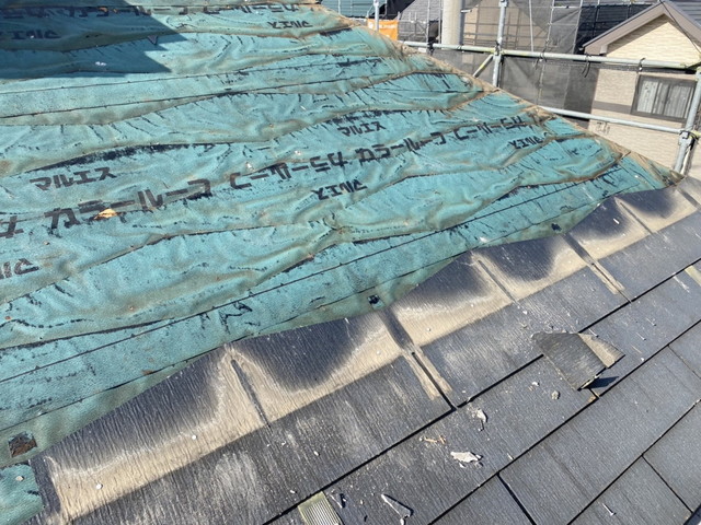 既存のスレート材は、長年の風雨や紫外線によって劣化しています。ヒビや割れ、反りなどの症状が見られることが多く、これらをそのままにしておくと、新しく施工する屋根材の耐久性にも影響が出てしまいます。そのため、古いスレート材を一度すべて撤去し、屋根下地の状態を確認・補修した上で新しい屋根材を施工する必要があります。