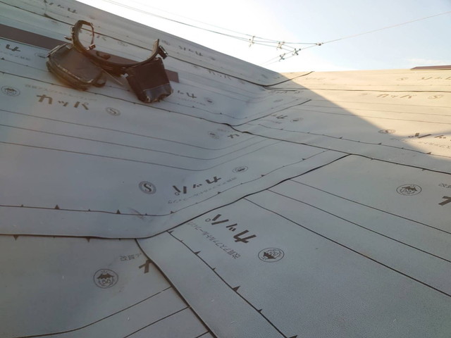群馬県前橋市 スレート材を撤去した屋根にルーフィングで下葺き施工