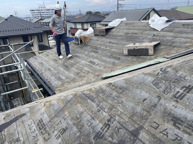 群馬県前橋市 屋根の葺き替え スレート材レサス撤去作業