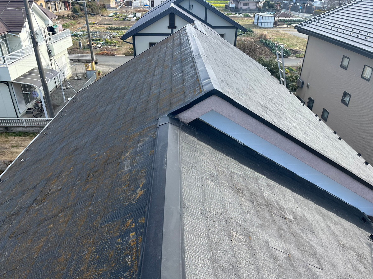 | 塗装 | コストが最も抑えられる。コケ除去・下地補修後の塗膜で見た目を回復。短期間で工事が完了。 | ひび割れの深いものや、下地が劣化している部分では再塗装だけでは問題を根本から解決できない。耐用年数は他の工法より短め。 | 浦部住総ではコロニアル屋根の色あせ・ひび割れを塗装で改善した事例多数あり。前橋市内で「経年劣化により色落ちやクラックあり」の屋根を塗装する例。 |