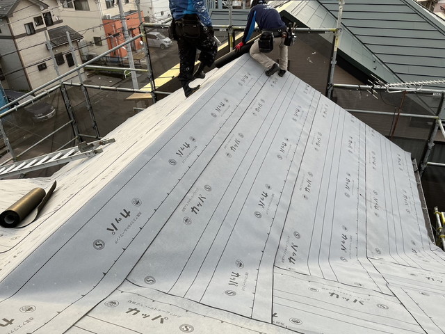 2. 群馬県前橋市でH様邸のコロニアル屋根からディプロマットスターに葺き替え工事、下地のルーフィングを施工したブログ