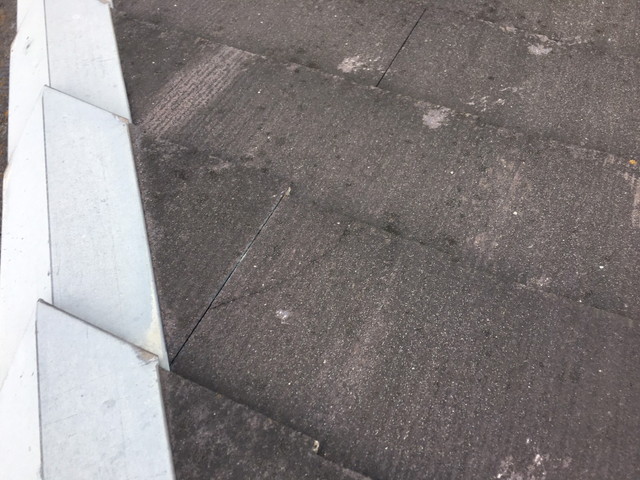 スレート材自体にもクラック(ひび割れ)や欠けが見受けられましたのでカバー工法でのメンテナンスをご提案させていただきました。