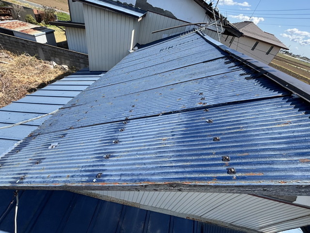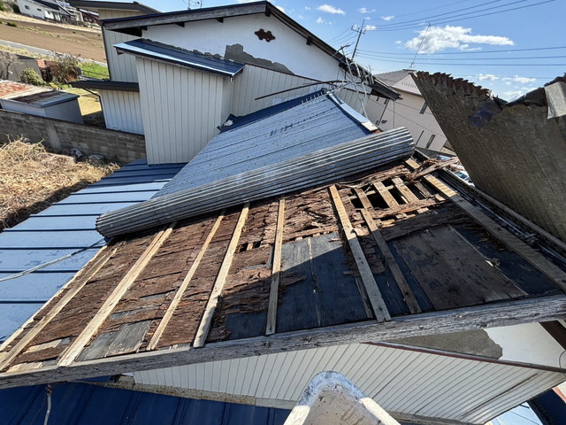 群馬県太田市で強風被害により板金トタンが捲れ雨漏りしてしまったお家の応急処置工事を行いました。