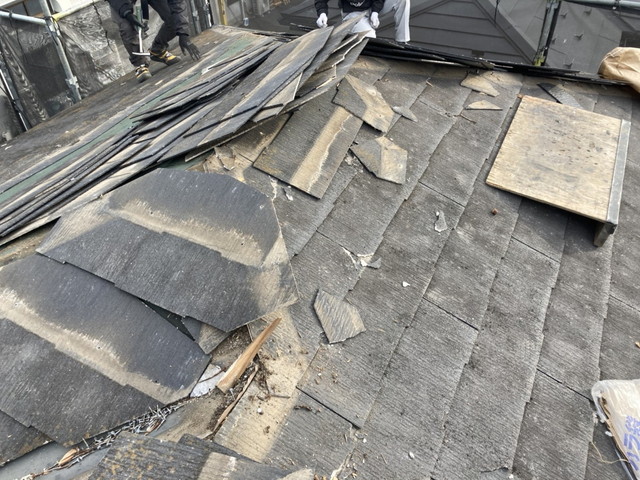 当社では、まず既存スレート材の撤去作業から丁寧にスタートします。