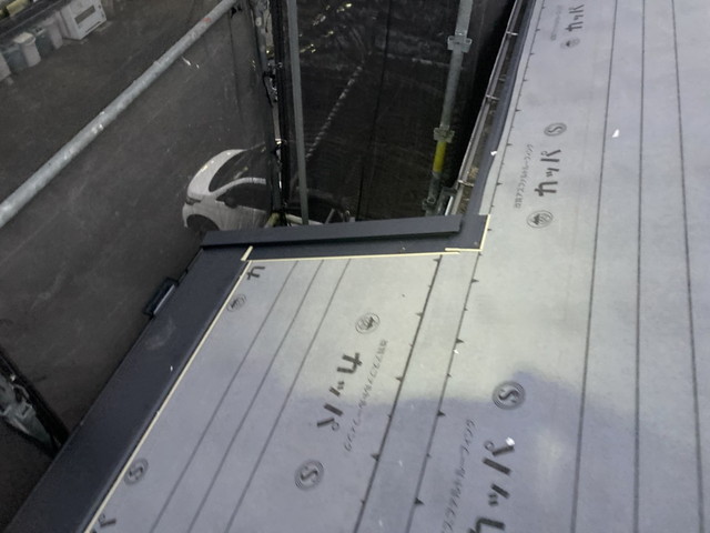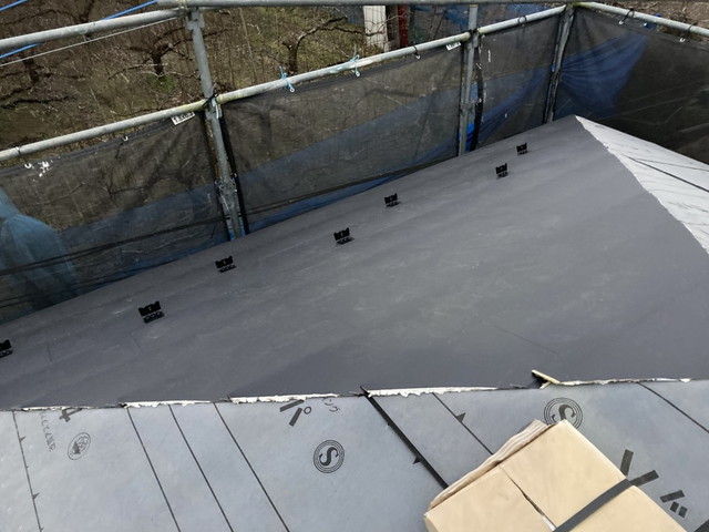 今回の施工では、既存屋根を撤去した後、ガルバリウム鋼板屋根材「ニチハ横暖ルーフS」を本体葺きとして採用しました。
