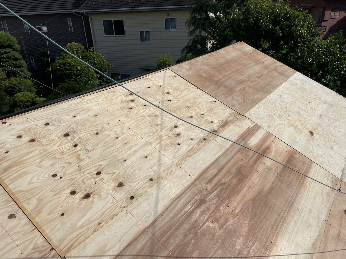 その後、防水性能を高めるために改質アスファルトルーフィングを施工し、雨仕舞をしっかり確保しています。