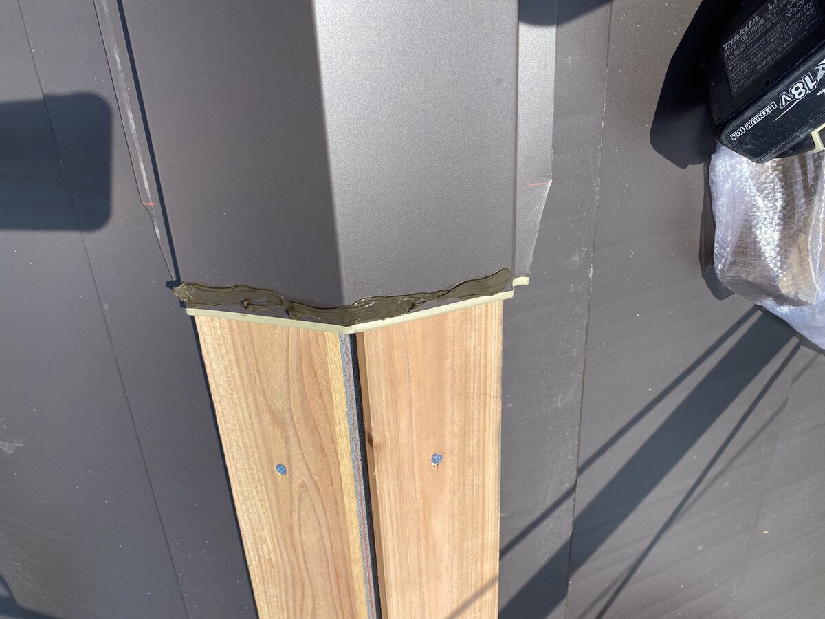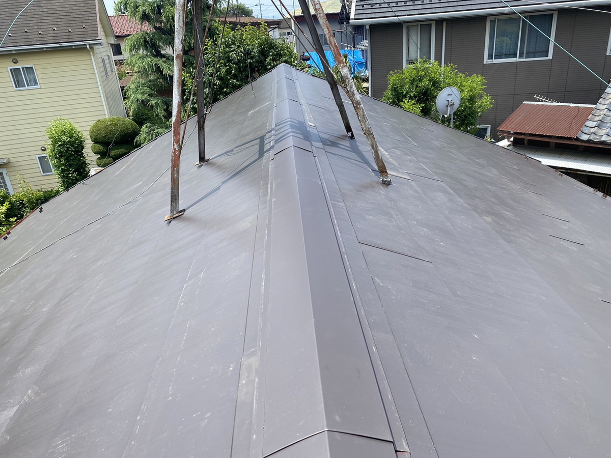 写真でも分かるように、棟や取り合い部分にはシーリング処理を施し、細部までしっかりと防水対策を行いました。