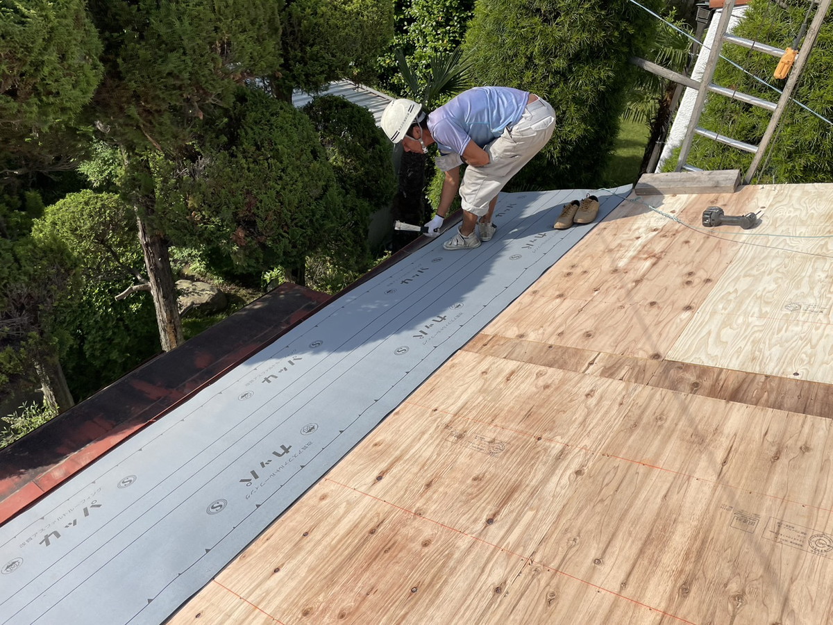 次に、新しい下地材を設置し、防水シート(ルーフィング)を丁寧に施工。