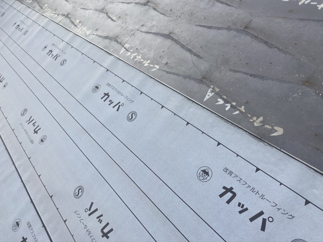改質アスファルトルーフィングを使用し下葺き工事を行いました
