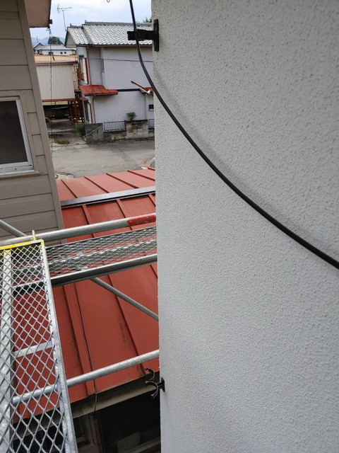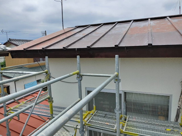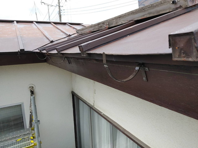 施工ではまず軒金具を等間隔で取り付け、しっかりと勾配を確保しました。