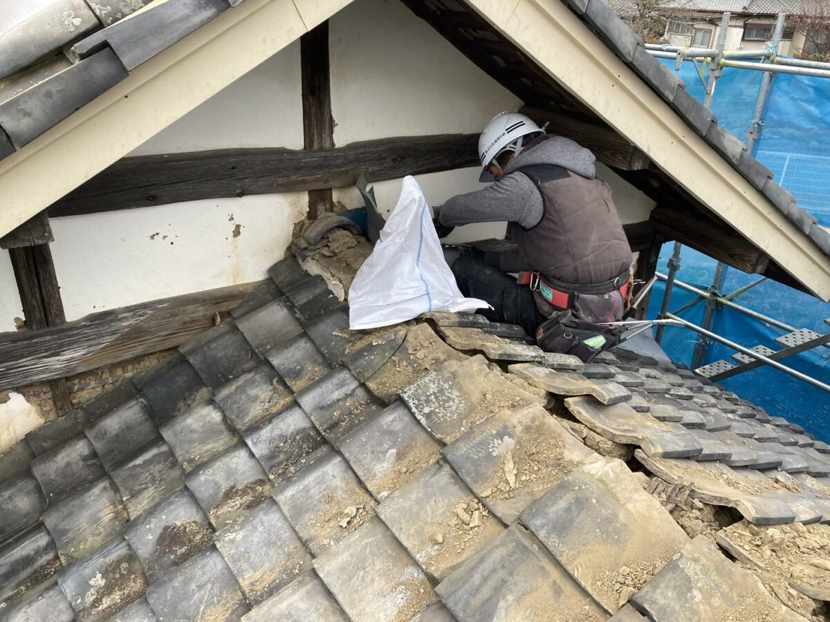 今回の現場は歴史ある古民家で、長年使われてきた既存瓦をすべて撤去する工程からスタートしています。