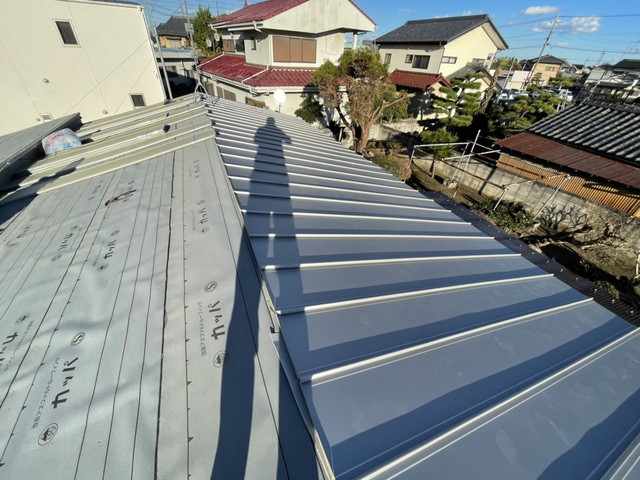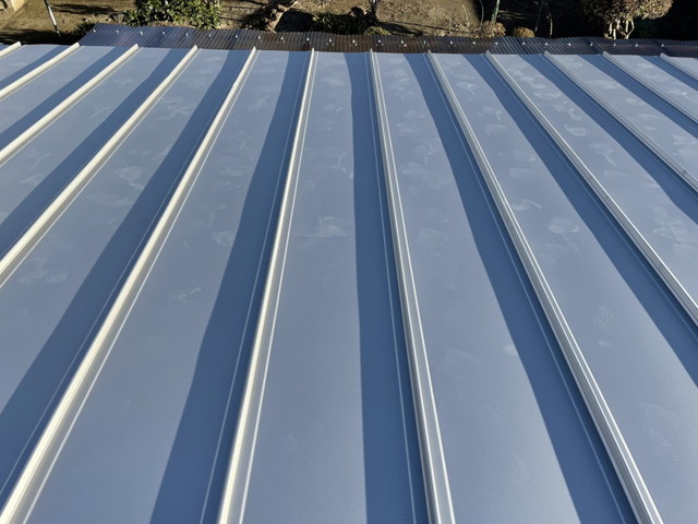 施工後は、金属屋根ならではのシャープで清潔感のある仕上がりに。