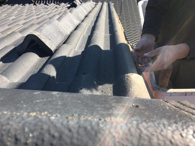 今回は、モニエル瓦屋根のケラバ部分において、既存のケラバ瓦を撤去する作業を行いました。