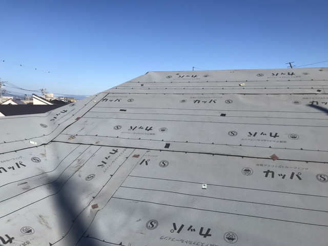 その後、下地には防水性能に優れた 改質アスファルトルーフィングで下葺き を行い、雨漏りを防ぐ二重構造を確保。