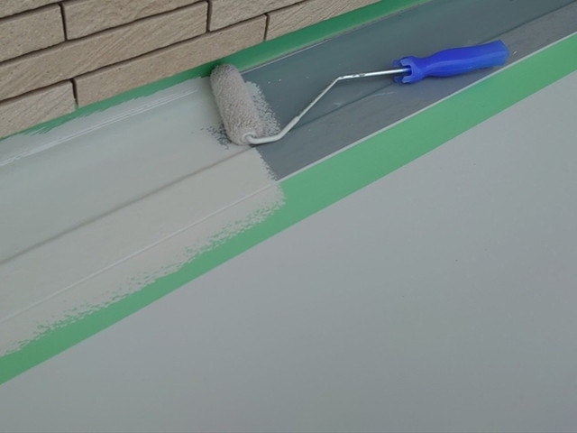 端部や取り合い部分はローラーを使って保護塗装を施し、シートとの一体感を出しながら、より高い防水性を確保します
