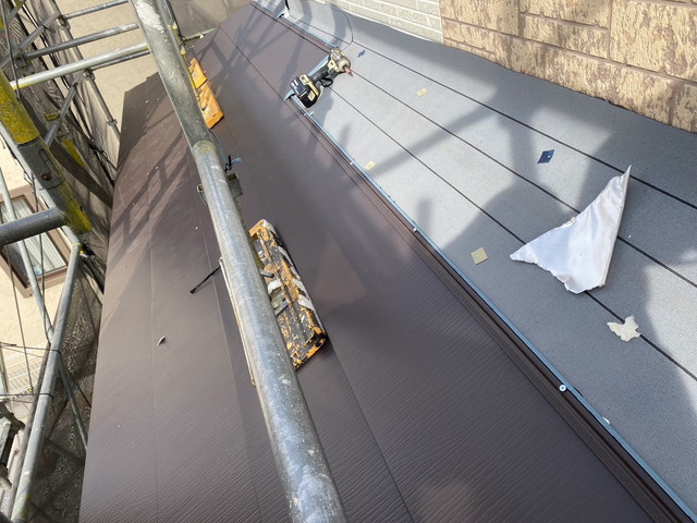 群馬県高崎市でN様邸のコロニアル屋根からスーパーガルテクトにカバー工法|下屋根の仕上げと下地から完成までの施工ブログ