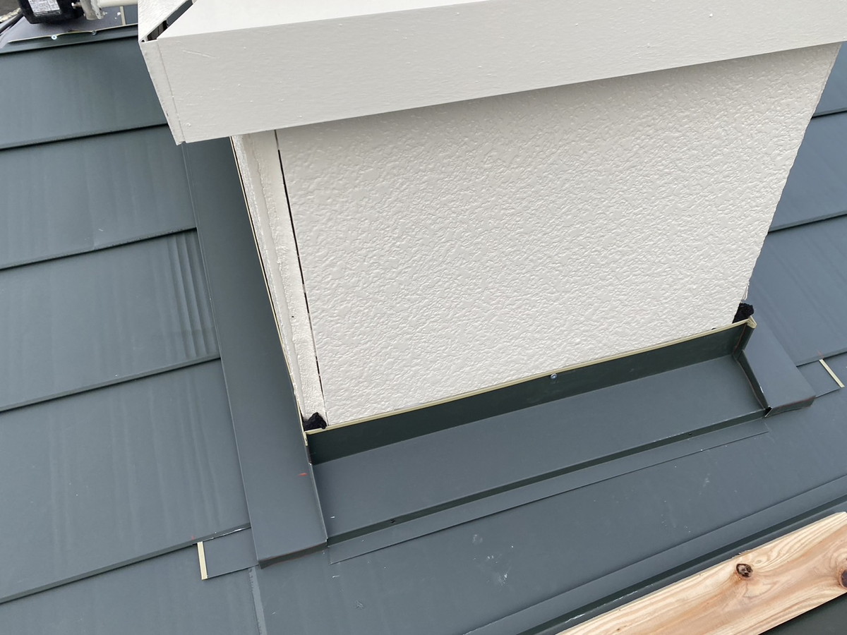 今回の工事では、雨漏りリスクが特に高い煙突廻りの納まりを重視し、細部まで丁寧に施工しています。