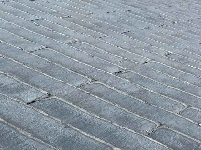 写真でも分かるように、既存コロニアルには細かなひび割れや、経年による防水層の劣化が確認できました。下地自体は大きな傷みがなかったため、今回は安心して葺き替え工事をご提案しています。