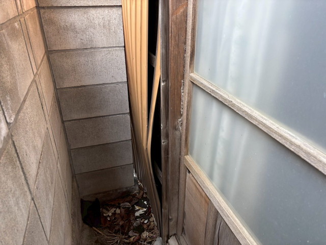 道路に面してる壁がバタバタと浮いており、前の通りが通学路になっているので、早めに工事して欲しいという事でお問い合わせいただきました。