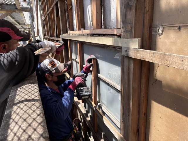 だいぶ古い建物なので下地も劣化していますが、費用はそこまでかけたくないとの事ですので、ある程度の妥協ラインで施工していきます。