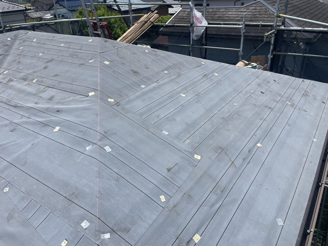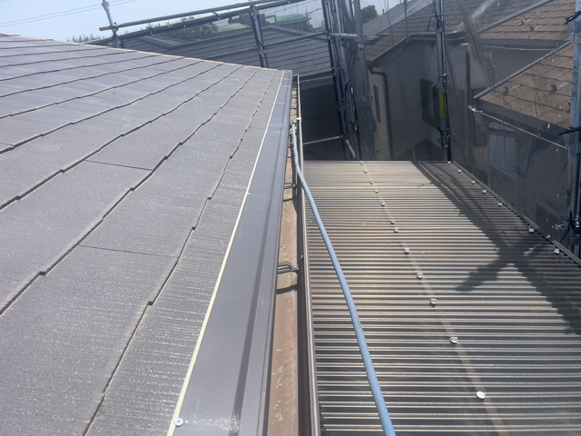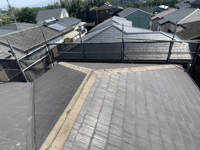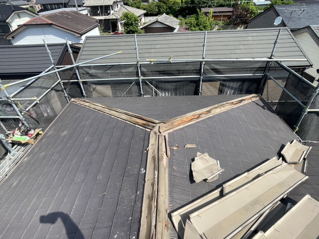 既存屋根材はコロニアルで、谷のある寄棟という形状をしております。